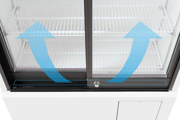 The Condensation condition on the Glass surface and Sliding door frame of Lab/Vaccine Refrigerator varies depending on the installation environment. Condensation occurs due to the difference between the surface temperature and the ambient temperature / humidity of the installation site. Therefore, condensation easily occurs under high temperature & humid environmental condition.