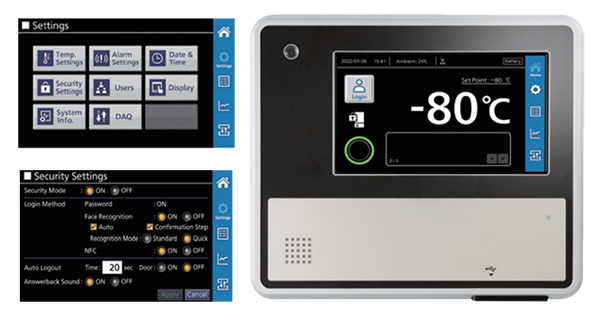 Features password protection, facial recognition, and NFC card authentication for enhanced security