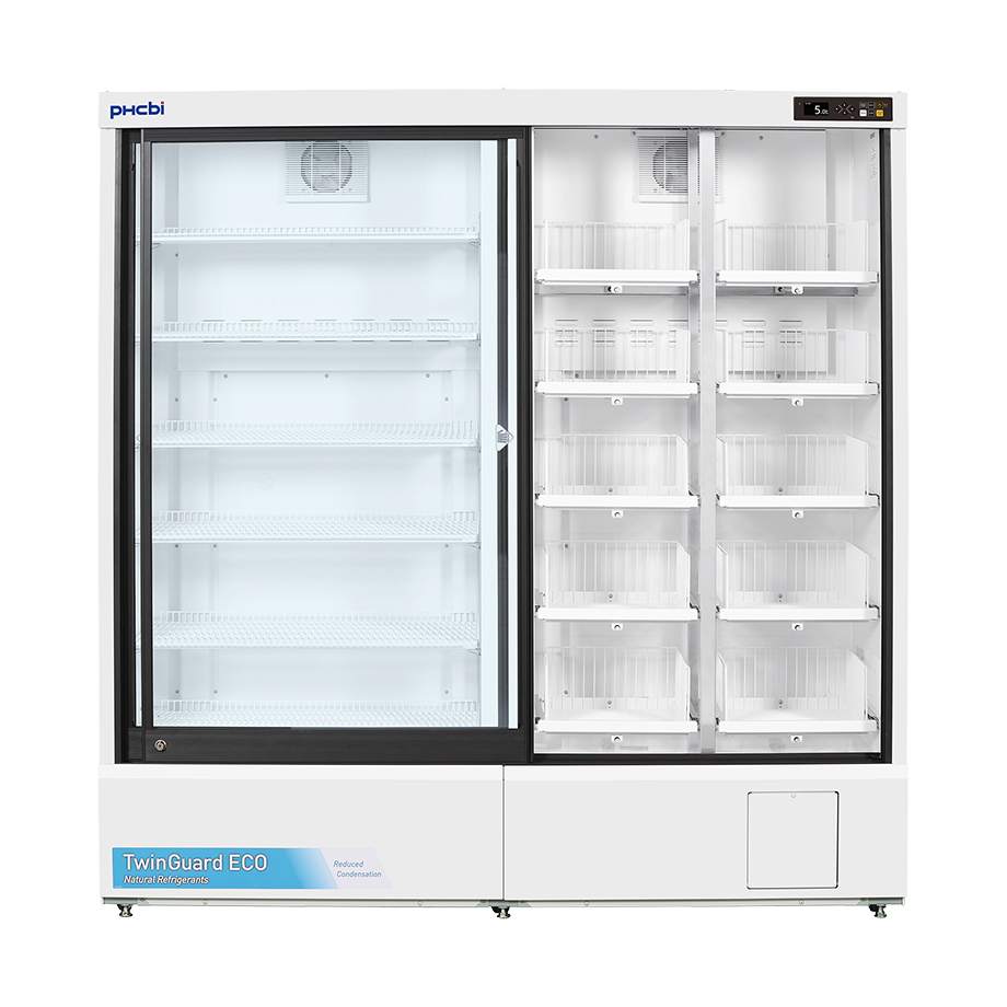 Unser pharmazeutischer Kühlschrank Twinguard MPR-S1201RXH-PE mit Schiebetür bietet eine höchst zuverlässige Temperaturregelung, um Proben, Reagenzien und Pharmazeutika sicher aufzubewahren. Er kombiniert Kältemittel aus natürlich vorkommenden Substanzen mit Wechselrichter-betriebenen Kompressoren für einen um ca. 77 % niedrigeren Stromverbrauch als bei bisherigen Modellen.