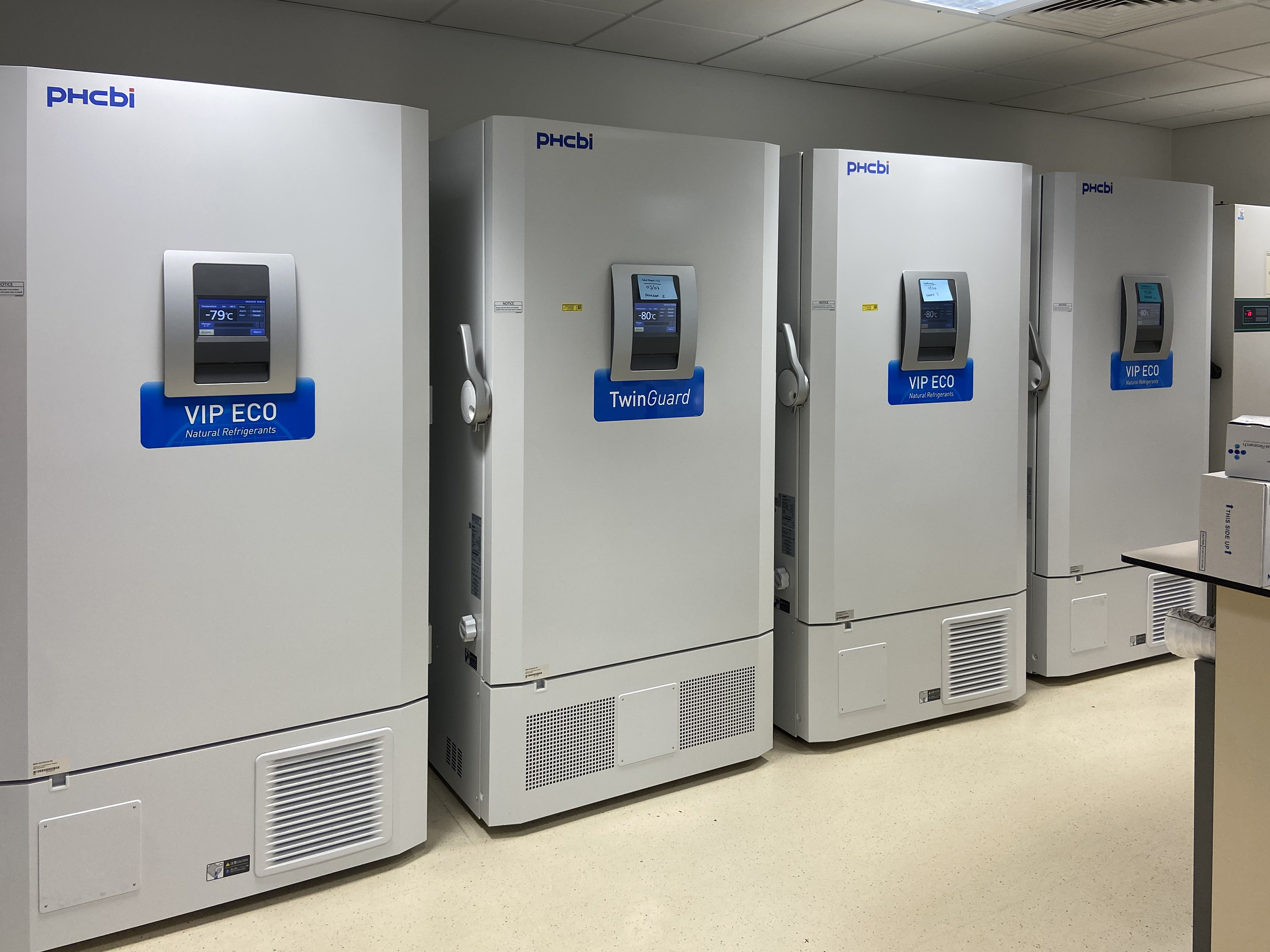 Präanalytische Labore wie das Manchester CRF am The Christie nutzen verschiedene Geräte wie -80 °C-Gefrierschränke, Zentrifugen und Sicherheitswerkbänke für die Untersuchung von Proben.