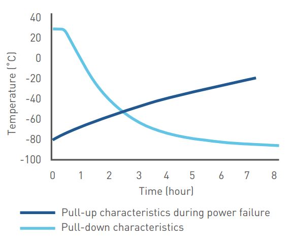 Mientras que los congeladores convencionales utilizan compresores de una sola velocidad que se conectan intermitentemente, el congelador MDF-DU502VH VIP ECO ULT contiene compresores controlados por inversor que se pueden ejecutar a diferentes velocidades para aumentar al máximo el rendimiento de la refrigeración en distintas condiciones. Estos compresores, combinados con refrigerantes de hidrocarburos, garantizan el uso más eficiente de la energía y la reducción de la potencia calorífica.