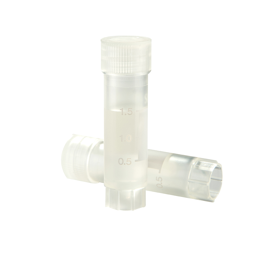 Cryogenic Vials for cryopreservation and transport can be used to safely store valuable samples such as cells, serum, and antibodies. The cryogenic vials have a silicone packing which is attached to the cap of the vials to ensure high airtightness and prevent drying of samples and liquid leakage.