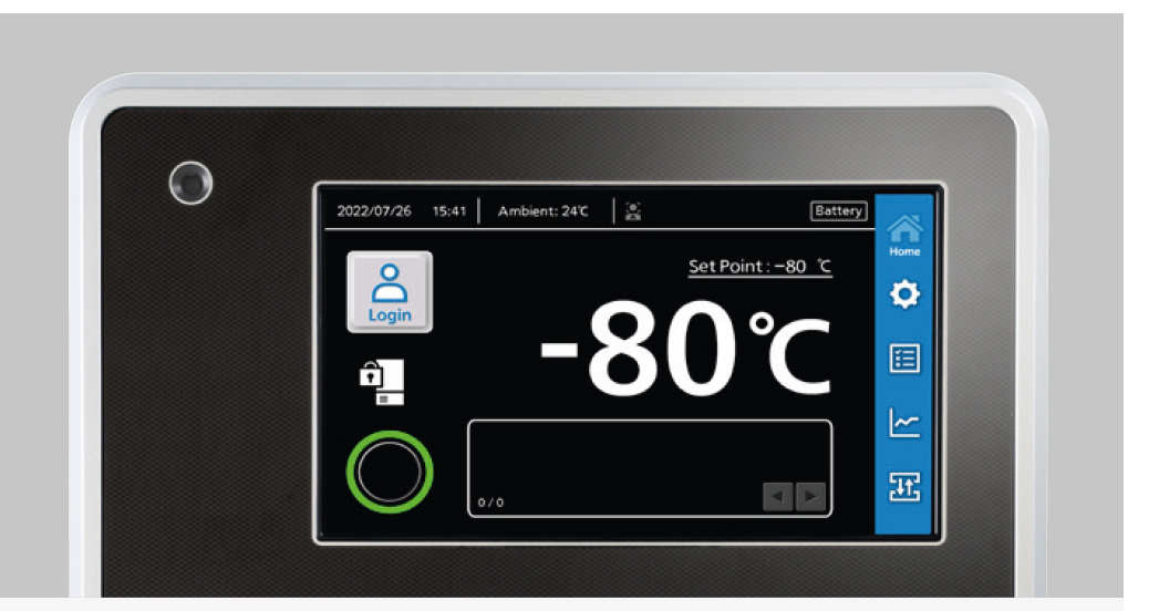 An eye level, door mounted, 10.1 inches high resolution LCD touchscreen allows full user control. A USB port makes transferring logged data to a PC convenient. All performance attributes are displayed and an internal temperature log can be expressed in graphic form over time.
