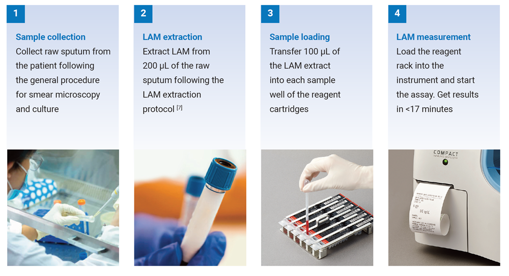- Sensibilité élevée : il détecte les concentrations de LAM les plus faibles, permettant le suivi du traitement de la TB même chez les patients présentant des charges bactériennes faibles.