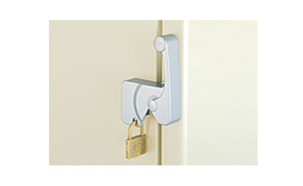 The outer door latch closes smoothly with a single-hand action over a cam action bearing. The outer door can be secured with an independent padlock provided by customer.