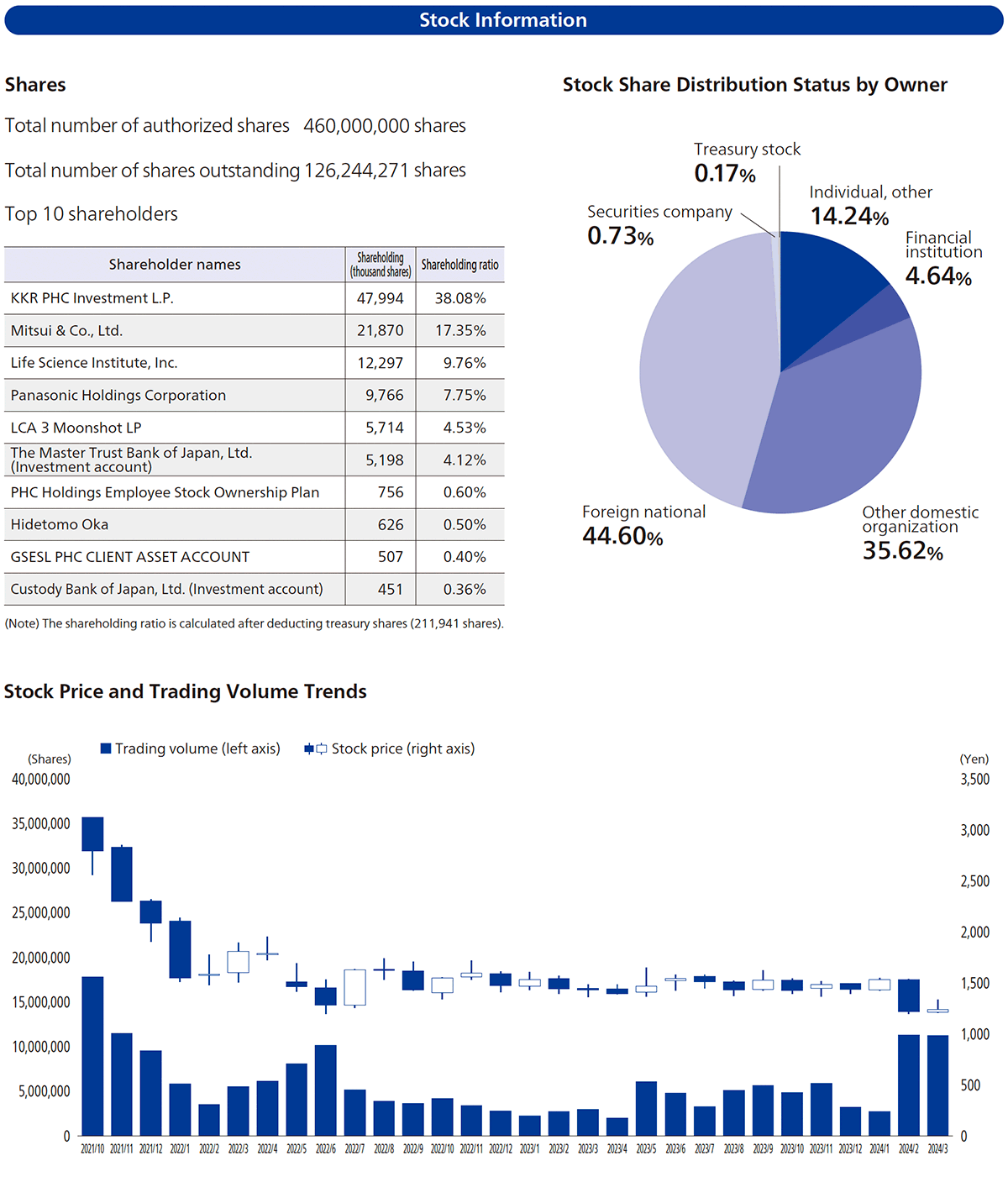 Integrated Report 2024 Data SectionCompany Overview and Stock Information PHC Group Overview and Vision PHC Group Business Strategy PHC Group Sustainability Data Section Performance Data Consolidated Financial Statements List of Main Companies Corporate Overview and Stock Information