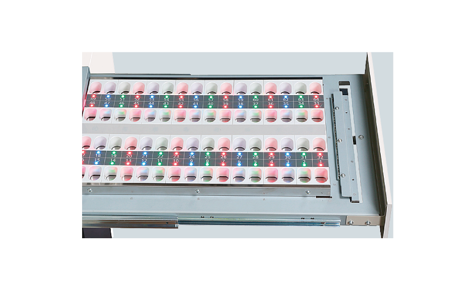 薬剤収納・包装部_UTC 128セル(2段式)、手まき案内多色LED表示付