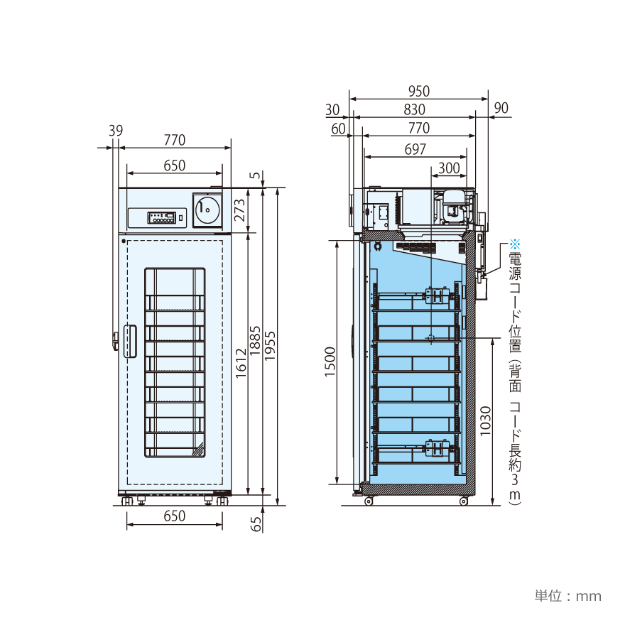 ※ 上記寸法は取手等の突起物を含みません。搬入時の必要寸法については寸法図をご参照ください。
