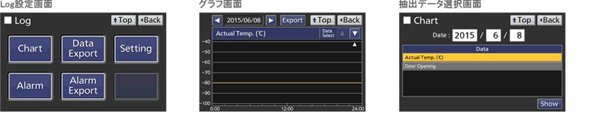 一定期間の運転データを蓄積、液晶パネルにグラフ化表示できます。