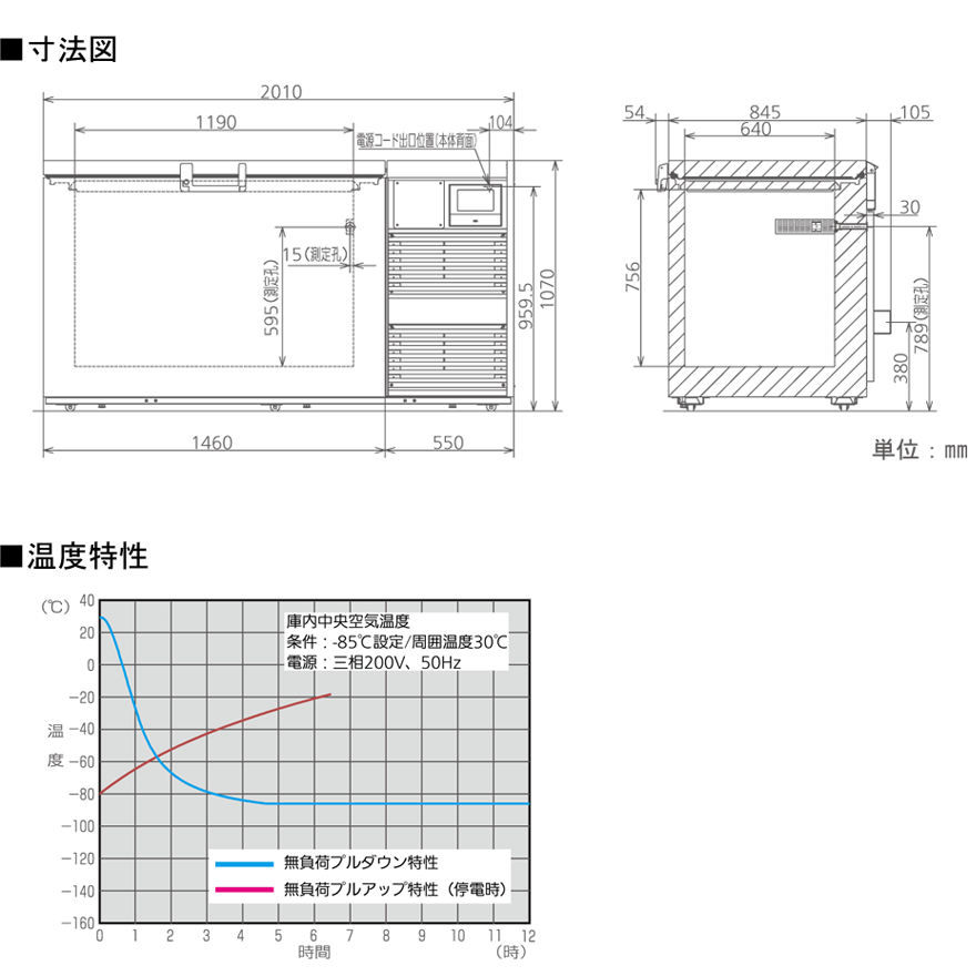 -85 ℃ ~ -50 ℃(周辺温度:5 ℃ ~ 30 ℃・無負荷)