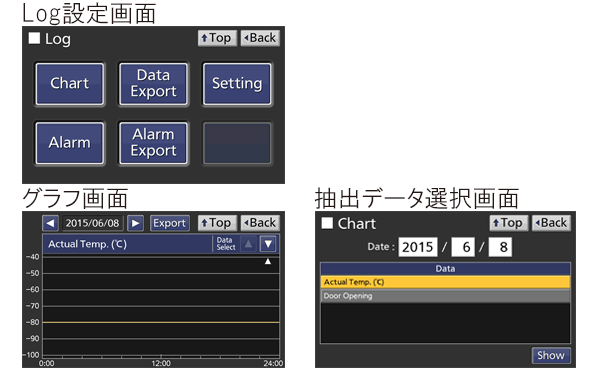 低温警報 設定温度-5 ℃ ~ -40 ℃(初期設定-10 ℃) 警報設定範囲外でAlarm表示文字点滅・庫内温度表示点滅・約15 分遅延後Warning表示・ブザー断続音・遠隔警報出力