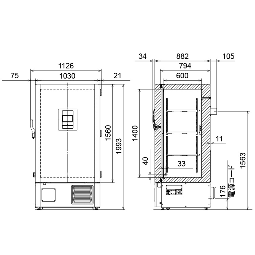 温度制御範囲 -85 ℃ ~ -50 ℃(周辺温度:5 ℃ ~ 30 ℃・無負荷)