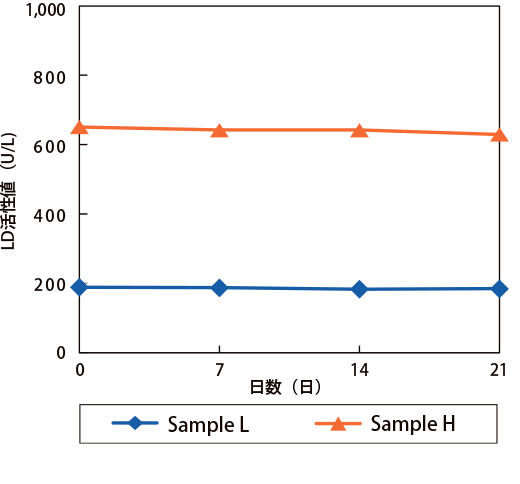 乳酸脱水素酵素キット イアトロ®LD-IF LD-IFとは IFCC標準化対応試薬を用いることで海外と測定値の共有ができ、国際的な臨床試験などに対応できます。また、JSCC標準化対応試薬と比べて健常者の測定値差は軽微であり、現行の共用基準範囲を用いることができます。一方、肝疾患などの乳酸脱水素酵素(LD)5アイソザイム優位検体においてJSCC標準化対応試薬と比べて低値傾向を示します。 測定原理 試薬中の基質L-乳酸は酸化型ニコチンアミドアデニンジヌクレオチド(NAD)の存在下で、検知中のLDによりピルビン酸に変化します。この反応における還元型ニコチンアミドアデニンジヌクレオチド(NADH)の生成速度を測定することでLD活性値を求めます。 相関性 7180形日立自動分析装置での検討結果 オンボードデータ安定性 併行精度(同時再現性) (n=10) (U/L) Sample L Sample M Sample H 平均 61 190 651 最大値 62 191 654 最小値 60 187 646 Range 2 4 8 S.D. 0.6 1.3 3.0 C.V.(%) 1.0 0.7 0.5 直線性 特異性、選択性(共存物質の影響) 基本性能データ7180形日立自動分析装置 製品概要 使用目的:血清又は血漿中の乳酸脱水素酵素活性の測定 商品コード 製品番号 製品名 包装 630354 7C2-03M1-R1 イアトロ LD-IF R-1:60mL×2 630361 7D2-03M1-R2 R-2:15mL×2 840418 7M2-03M1-R1 R-1:540mL×2 840425 7P2-03M1-R2 R-2:140mL×2 800337 LS8-03M1(2) R-1:40mL×2 R-2:10mL×2 770326 TBA-03M1 R-1:52mL×2 R-2:13mL×2 500961 ST-02MX 酵素キャリブレータープラス 「ヤトロン」 1mL×6本 100352 RM100-35 酵素コントロールプラス1・2 「ヤトロン」 1mL×3×2濃度 適応機種の詳細はお問い合わせください