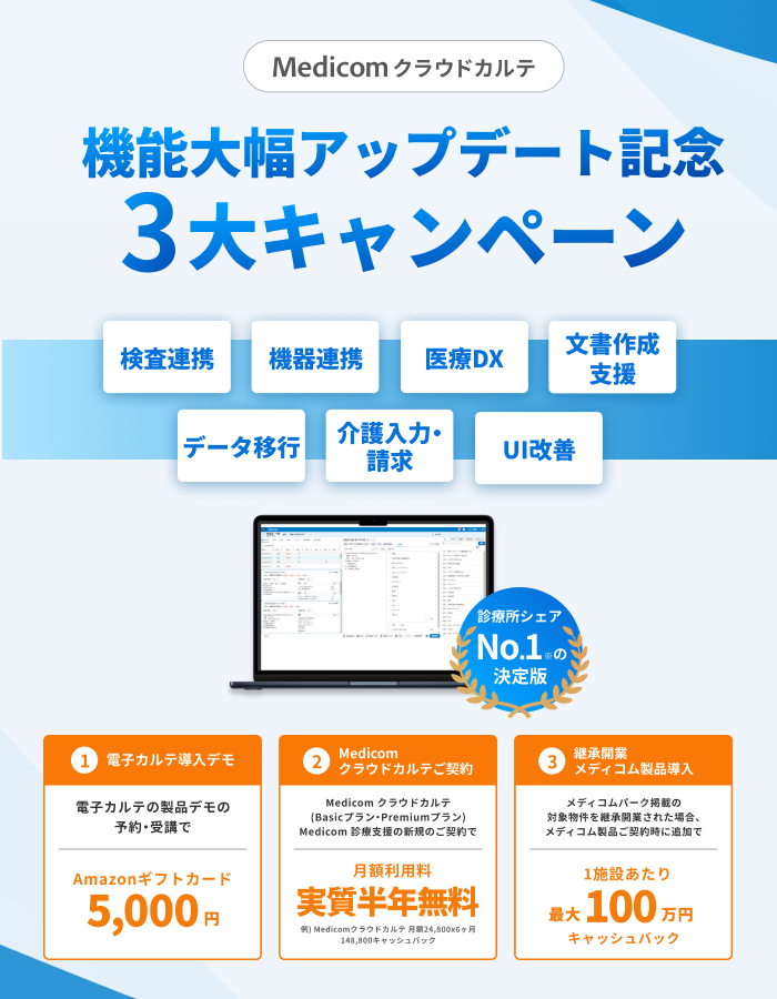 メディコムの電子カルテは、一般診療所向けシェアNO.1※。