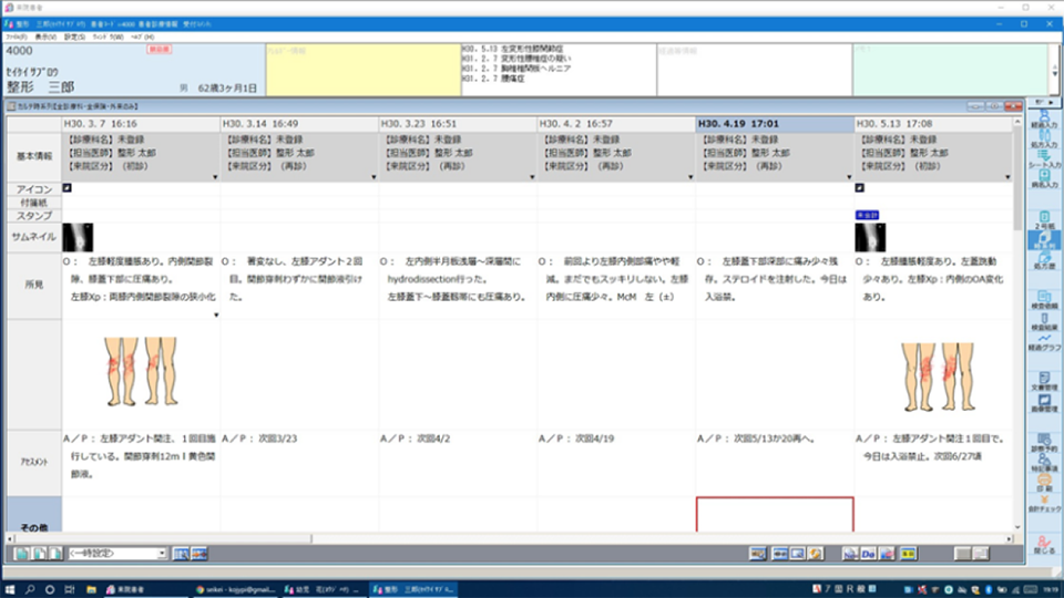 カルテの時系列表示により、情報を比較しながら治療の流れに沿って確認