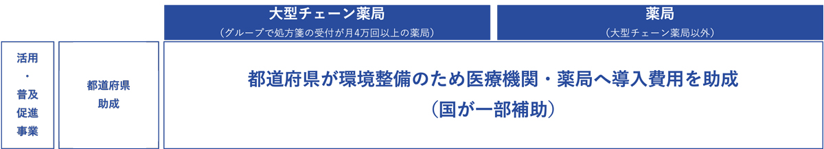 令和7年9月までに電子処方箋を導入した施設を補助対象として、都道府県が環境整備のため医療機関・薬局への導入費用を助成(国が一部補助)します。