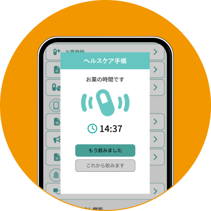 ③お薬の時間になるとアラームでお知らせ。お薬飲み忘れを防止。