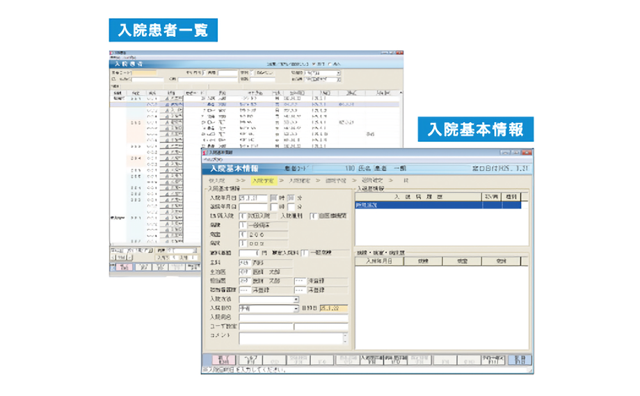 入院受付や入院会計にも対応し、入院患者の情報を総合管理します。 - 入院事務 -