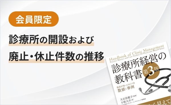 診療所経営のための最新の統計データに基いた「数字」と「経営戦略」を掲載。昨今、診療所を取り巻く環境は大きく変化しています。実例も多数掲載しています。今のような激動の時代に健全な経営を考えるための一助にぜひ、ご覧ください。