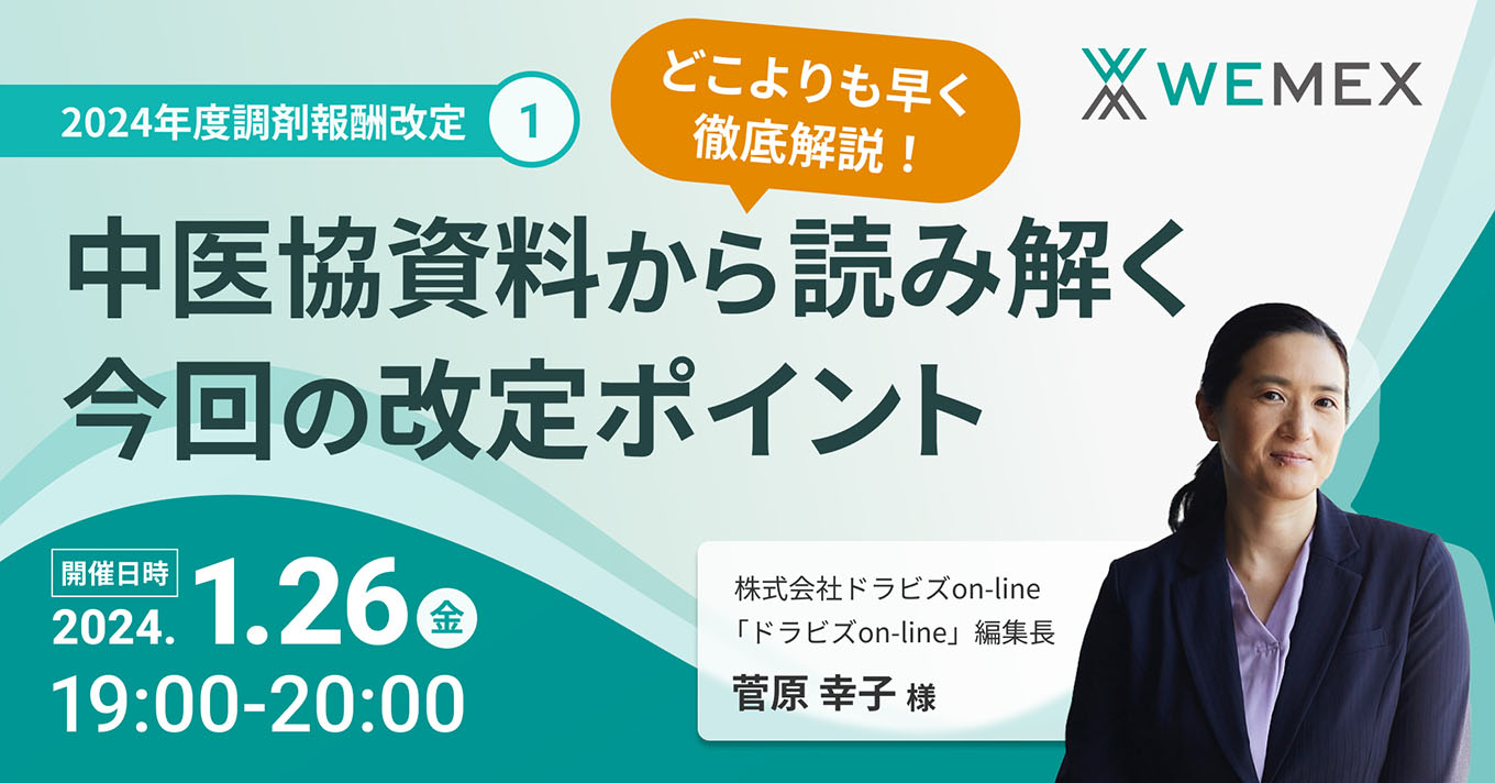 本記事では、2024年1月26日に株式会社ドラビズon-lineの菅原さんを講師として迎えて開催したセミナー「どこよりも早く徹底解説!2024年度調剤報酬改定①~中医協資料から読み解く今回の改定ポイント~」の講演内容をもとに、調剤報酬改定の基本方針について解説します。<br><br> 2024年は6年に1度のトリプル改定の年であるとともに、「患者のための薬局ビジョン」で掲げられた2025年まで残り1年です。調剤報酬改定のポイントを理解することで、薬局業界の方針やこれからの薬局に求められる役割をしっかりと理解しましょう。<br><br> なお、本記事は厚生労働省から発表された2024年度診療報酬改定の個別改定項目について、一部講師の意見を交えて解説したものとなります。 本記事は点数の入っていない個別改定項目(短冊)公表段階のものです。点数の入った答申以降の情報は第2回のセミナーのオンデマンド配信でご確認ください。