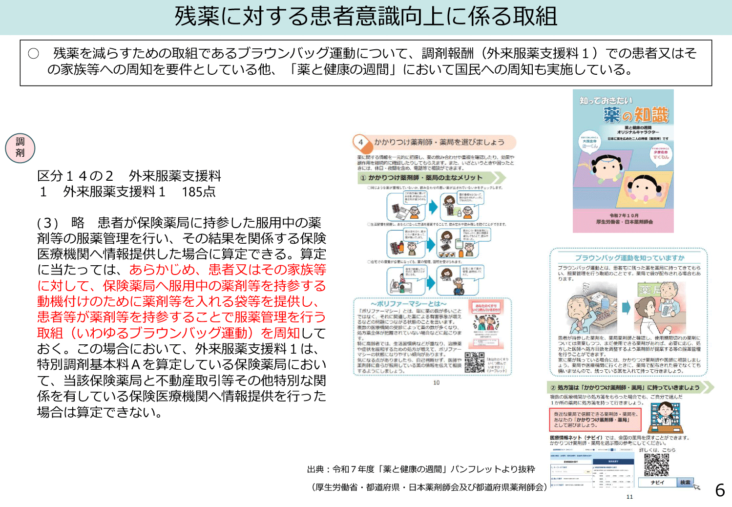 ◆残薬対策は、ここ数回の改定でも少しずつ進化してきています。たとえば、平成28年度には、処方箋に「残薬調整欄」が新設されましたし、令和2年には「服用薬剤調整支援料」という形で薬局の取り組みが評価され、前回の改定では、「残薬調整に関する疑義照会」に対して、20点~40点の評価が新たに見直されました。そして今回の議論では、さらに一歩進んでいます。特に注目されているのが、医師と薬剤師の連携のあり方です。また、電子処方箋の普及やオンライン資格確認を通じて、患者ごとの薬の履歴が見える化されつつあることから、この仕組みを活用して、「薬の一元管理」をどう実現し、評価するのかが重要なテーマとなりそうです。